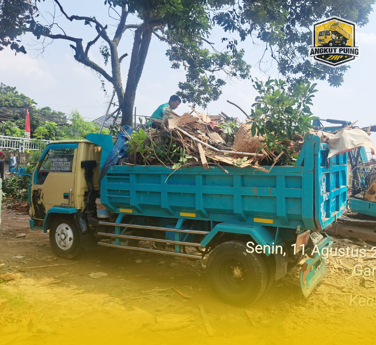 Angkut sisa potongan pohon dan daun hingga area bersih.