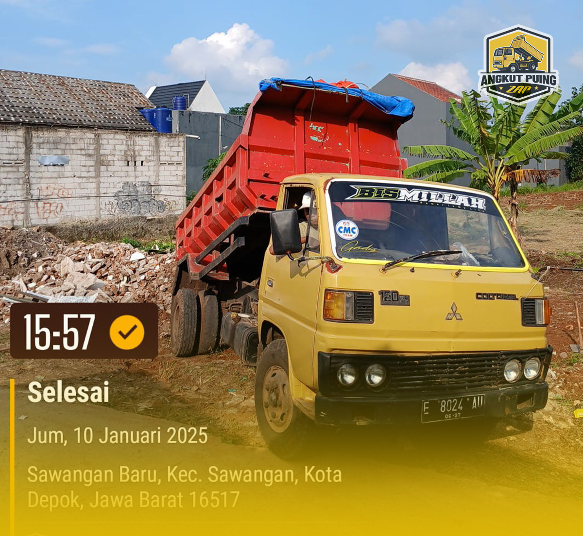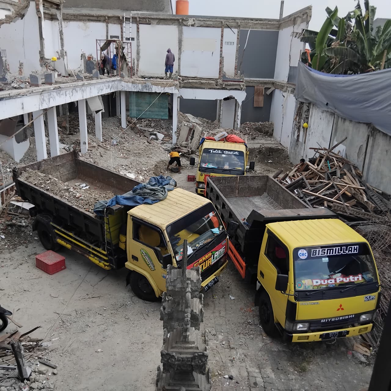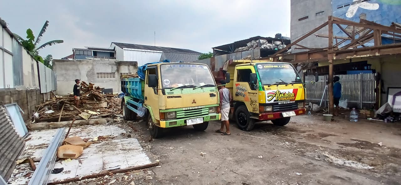 Pengangkutan puing bangunan cepat, rapi, dan lokasi kembali bersih.